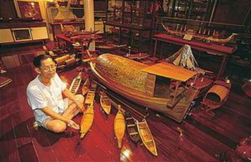 เรือจำลองที่จัดแสดงเหล่านี้อาจารย์ไพฑูรย์ต่อขึ้นตั้งแต่ปี พ.ศ. 2537 ซึ่งทุกลำต่อขึ้นโดยย่อส่วนจากแบบจริงทุกประการ แม้เรือบางแบบเป็นเรือโบราณที่ไม่เคยเห็นมาก่อน อาจารย์ไพฑูรย์ก็จะศึกษาค้นคว้า จากทั้งเอกสาร จากภาพจิตรกรรมฝาผนังตามวัดในอยุธยา และจากที่กล่าวถึงไว้ในวรรณคดีไทยเรื่องต่างๆ รวบรวมข้อมูลจนกระทั่งสามารถต่อเป็นเรือได้สำเร็จ นอกจากนี้ ยังมีการจัดแสดง เครื่องมือที่ใช้ในการต่อเรือในอดีต เช่น ขวาน ผึ่ง สว่าน โฉเฉ เป็นต้น