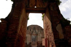 Set in the centre of the historical park with its classic Ayutthayan style stupa, is the towering prang of Wat Phra Ram. The pagoda structure was made of brick and mortar without bonded plaster influenced by Khmer architecture (Ancient Angkor) from Lawo (Lop Buri). This structure was popular during the early Ayutthaya period.