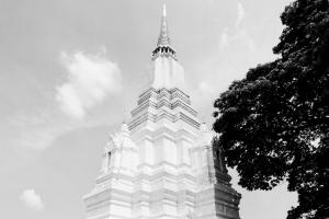 The white and gold pagoda (Chedi) is situated in the area known as the Hua Laem District or Tha Wasukri, on the bank of the Chao Phraya River. The pagoda is very attractive and can be seen from a distance. The architecture of the chedi consists of a single bell-shaped pagoda with its square base and twelve indented corners. On the top of the four niches over the square base are located smaller chedis without a Buddha statue. It has been gilded with gold paint from the relic chamber to the top o