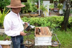 The agro-tourism of bees here provides academic knowledge as well as fun of behavioural studies and the life cycle of bees, and a variety of economic insects. Moreover, visitors can closely watch the raising of bees and producing of bee’s products. For those who want to practice raising bees, stingless bees, crickets and other insects which generate income for farmers, they can learn from the very initial steps until the final episode of getting pure honey, as well as other processes of producin