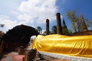 This was an important temple during the Ayutthaya period. It was the residence of Somdet Phra Wannarat, the monk dean of the Aranyawasee clergy. The primary feature of this temple is the large principle chedi that is believed to have been built by Phra Naresuan as a monument of the victory over Phra Maha Ubparaj of Hongsawadee. Therefore, the temple was named “Wat Yai Chai Mongkol
